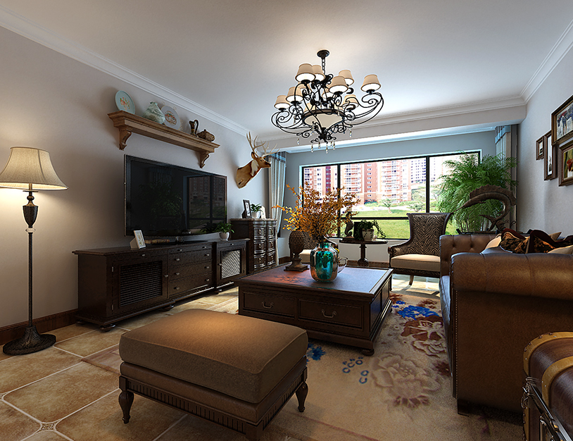沈阳客厅-美式装修风格-125m²