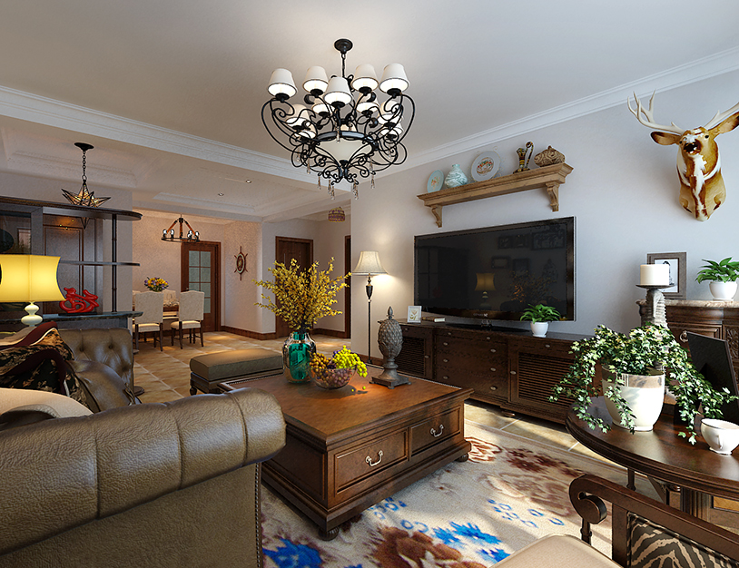 沈阳客厅-美式装修风格-125m²